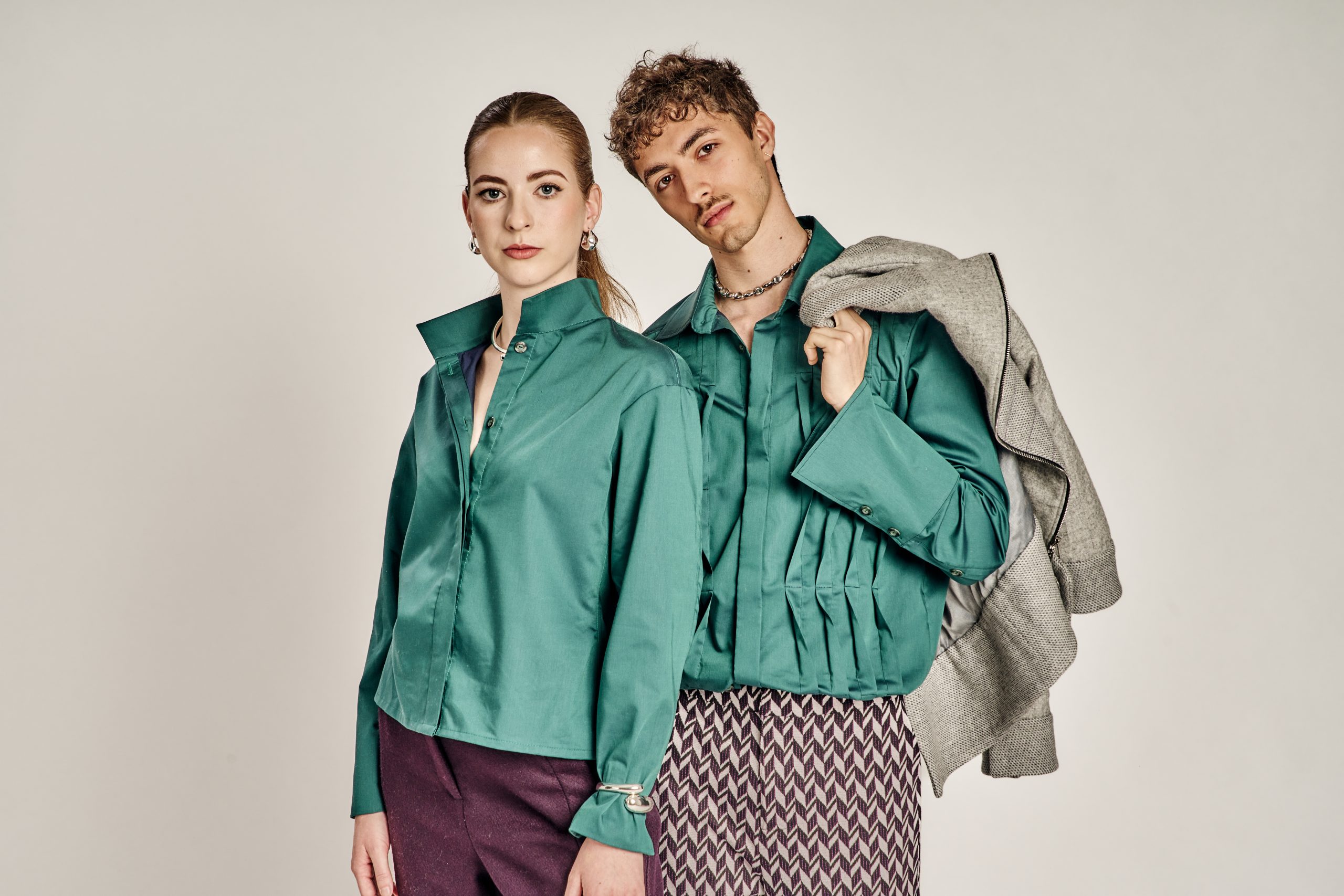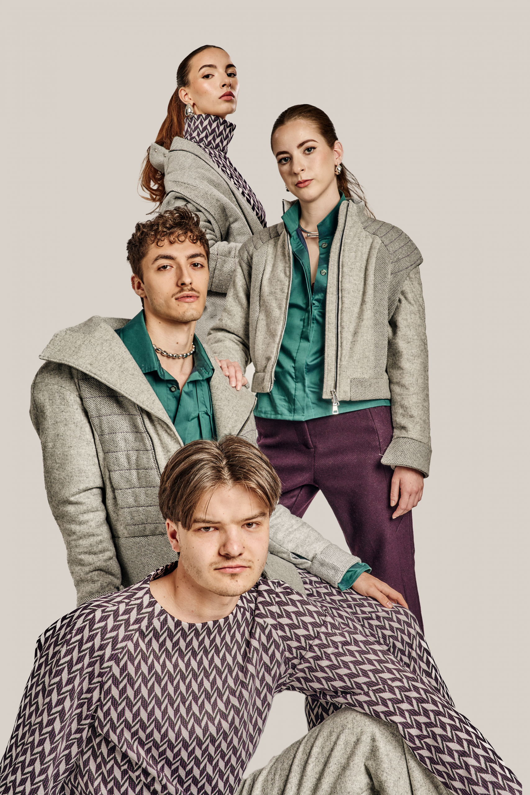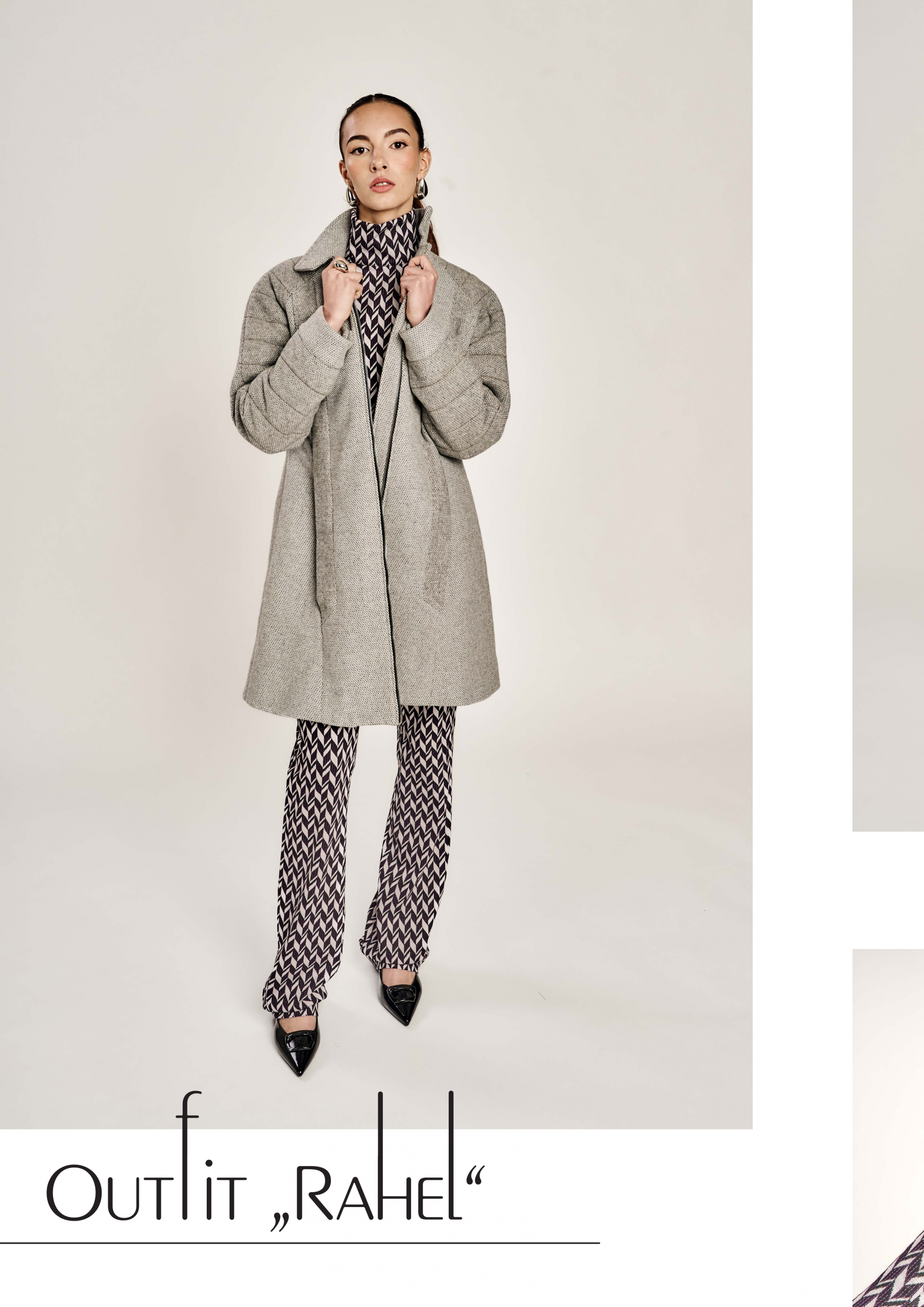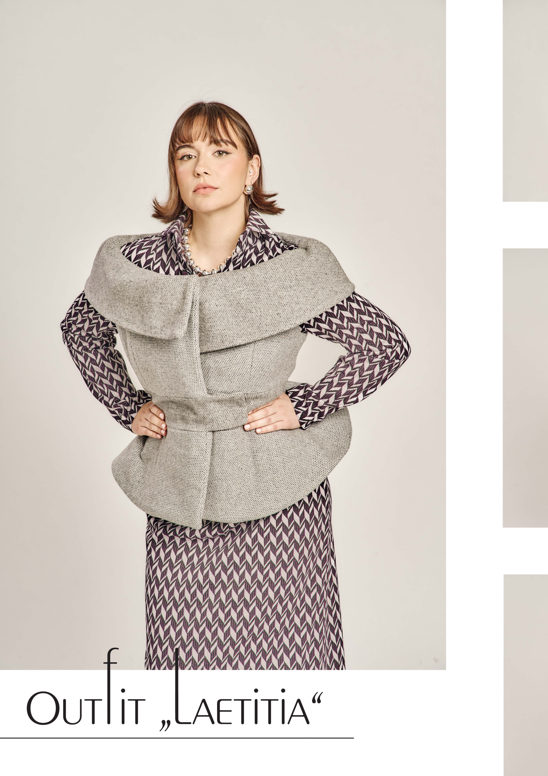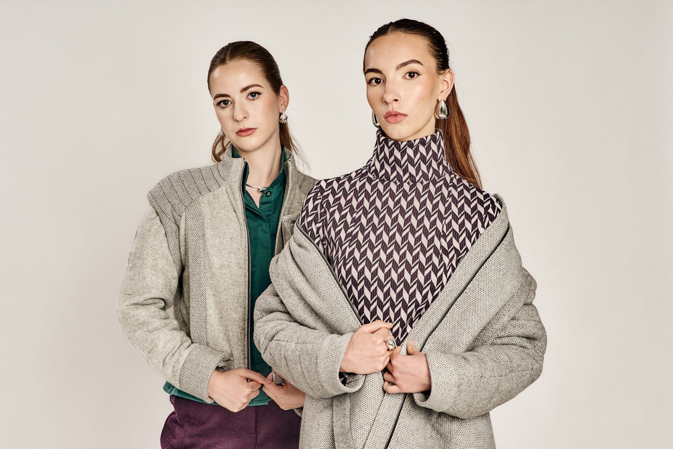 Zurückhaltung trifft auf Ausdruck, Klassik auf Zeitgeist – die Kollektion lebt vom bewussten Spiel der Gegensätze. Klare, kühle Wollstoffe treffen auf laute Muster und satte Farben; feine Schneiderkunst begegnet mutigen Proportionen. Dieser Dialog zwischen Alt und Neu, Leise und Laut, zieht sich wie ein roter Faden durch alle Entwürfe.