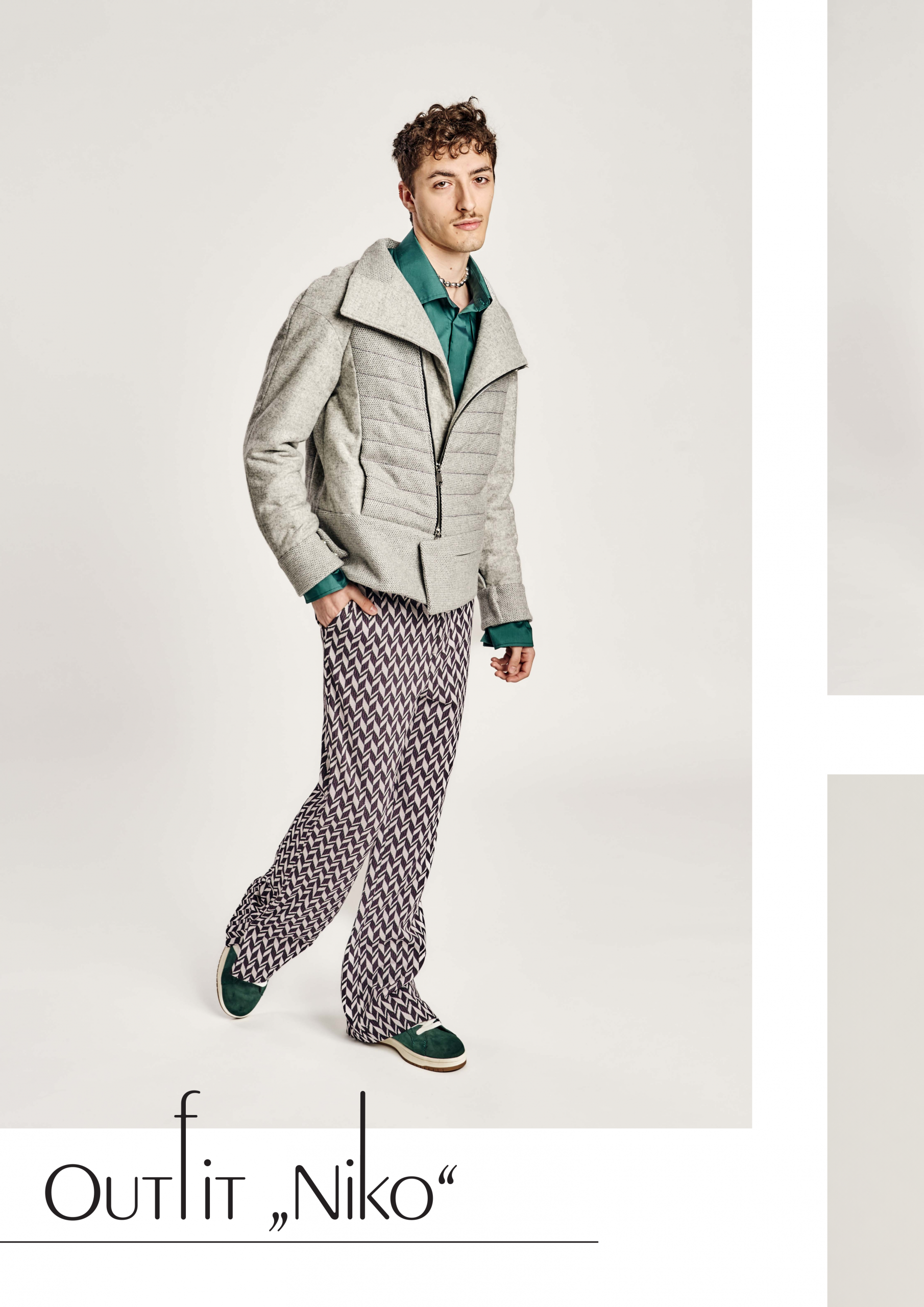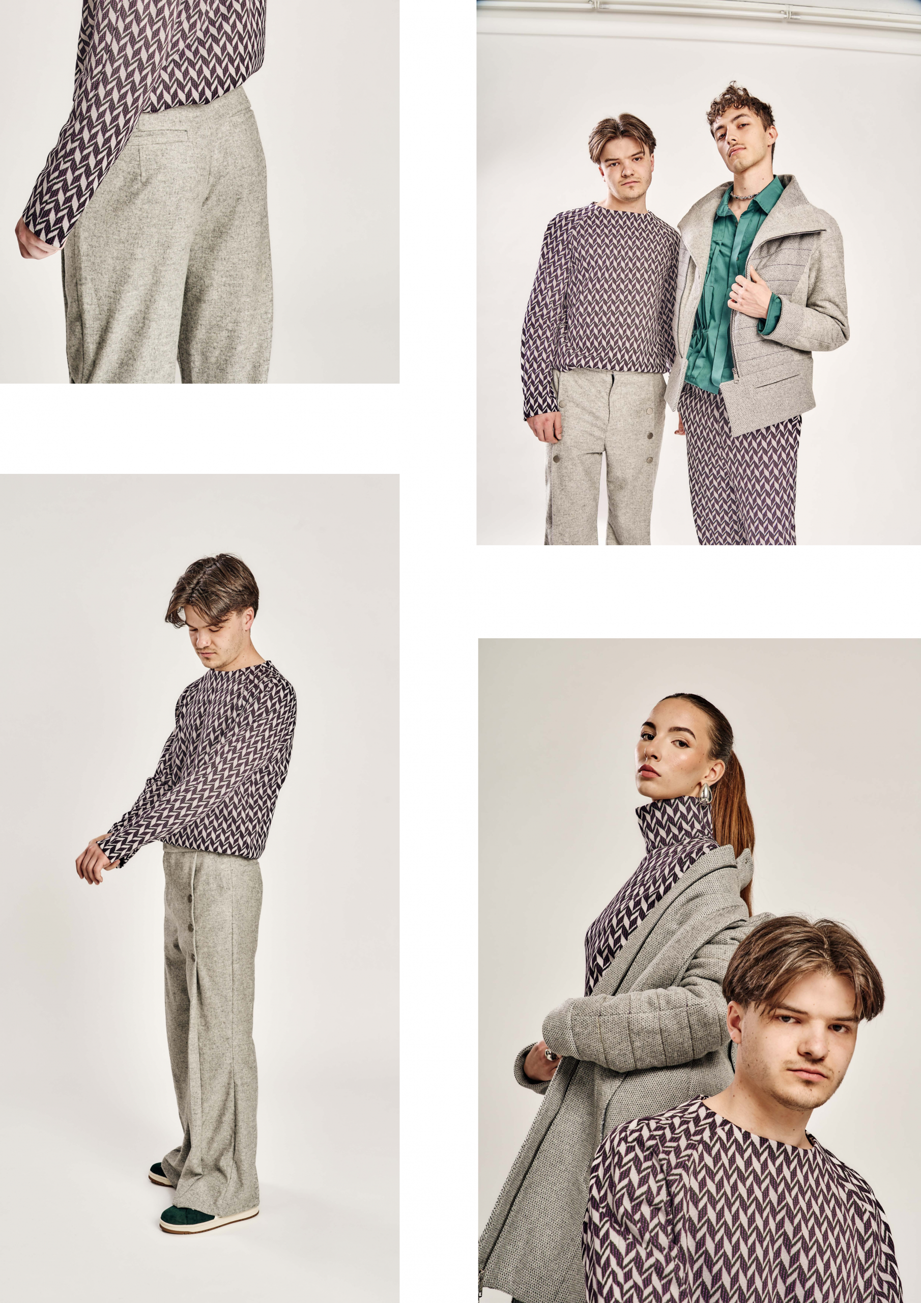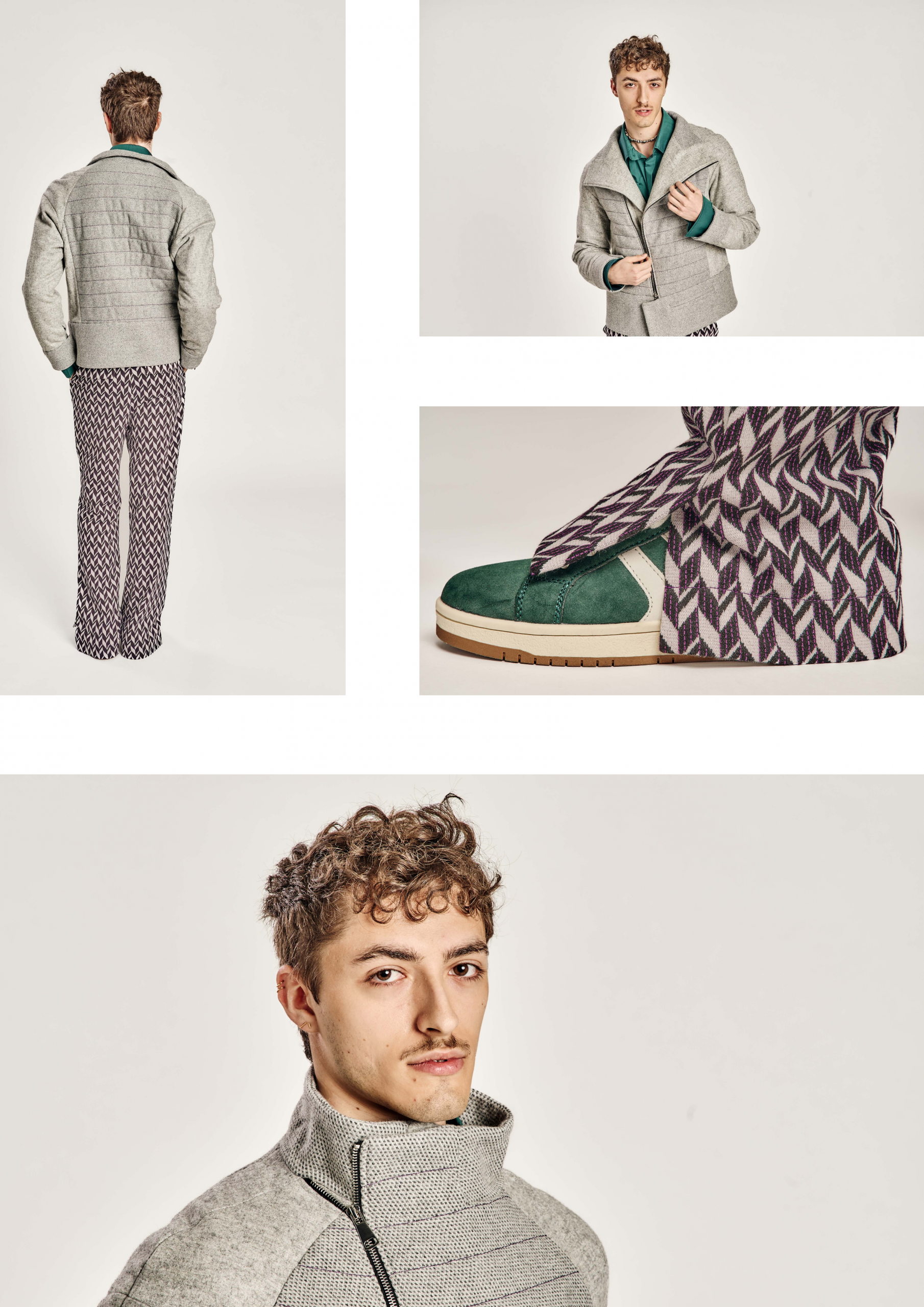 Inspiriert von der grafischen Strenge und stilistischen Freiheit der 60er- und 70er-Jahre, kombiniert Heritage Hype vertraute Schnittformen mit zeitgenössischen Brüchen. Traditionelle Details wie Golffalten, Raglanärmel oder Schlaghosen werden mit überlangen Manschetten, breiten Krägen oder tiefen Schlitzen neu interpretiert. Die Kollektion hinterfragt so die Grenzen zwischen Nostalgie und Moderne und formuliert eine Haltung: Klassisches Handwerk wird nicht konserviert, sondern als lebendiger Teil des Jetzt verstanden.